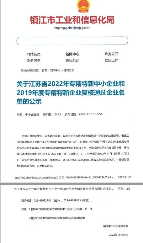 近期,鎮江市工業和信息化局發布了《關于江蘇省2022年專精特新中小企業和2019年度專精特新企業復審通過企業名單的公示》,太陽能鎮江公司成功入選江蘇省2022年度省級專精特新中小企業名單。