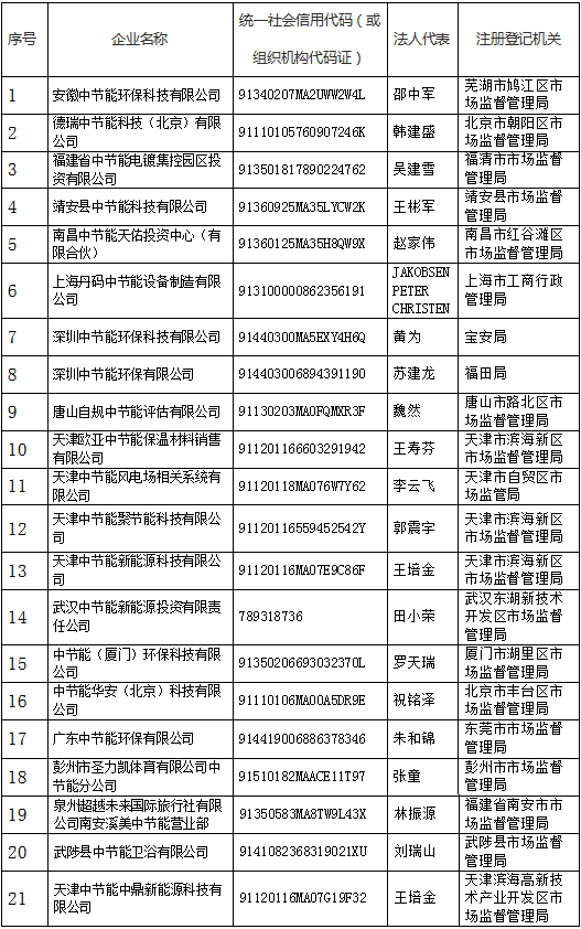 中國節能環保集團有限公司(以下簡稱中國節能)是國務院國資委監管的以節能減排、環境保護為主業的綜合性集團公司。“中節能”作為中國節能企業字號及注冊商標廣泛使用于中國節能所屬各級子公司企業名稱及有關服務項目和產品,經過數十年的經營及宣傳,已在市場上具有廣泛知名度和品牌影響力。 近期,中國節能發現多起與中國節能沒有任何產權關系的企業涉嫌侵犯“中節能”字號品牌的事件,涉及在企業名稱中冒用“中節能”字號,未經許可在類似服務上使用“中節能”注冊商標等違法行為。該等企業行為使公眾誤認為其與中國節能及所屬相關業務板塊子公司存在特定聯系,容易導致混淆,已涉嫌不正當競爭,對此中國節能已依法開展相關維權行動。 現中國節能鄭重聲明,經我集團核實,以下公司及其下設各級子公司與我集團無任何隸屬或股權關系,也不存在任何投資、合作、業務等關系,其一切行為均與我集團無關。請社會各界提高警惕,注意防范風險。 特此聲明。