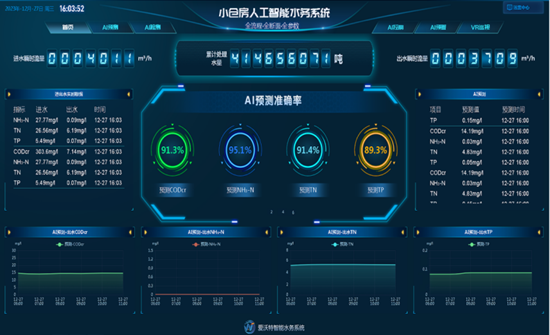 在這里,先進的技術與環保理念相融合。廠區部署的人工智能水務系統,將數據監控平臺、曝氣智能控制、回流智能調控等核心模塊編織成一張覆蓋“工藝全流程、監測全斷面、參數全維度”的智能化網絡。在線預警算法如同24小時值守的“環保哨兵”,精準識別水質超標、數據異常等情況,實現從預警提醒到運維存檔的全流程閉環管理,極大地提升了水廠的應急處理能力和管理水平。智能巡檢系統則像不知疲倦的“技術專家”,通過自動化分析將工藝調控精度提升30%以上,大幅減少人工干預的需求,為污水處理行業數字化轉型樹立了技術范本。 再將視線從小倉房凈水廠的數智化運行移到綠色能源版圖上,一幅清潔低碳的新圖景徐徐展開——1.8兆瓦光伏電站如藍色綢緞鋪展在廠區上空,在陽光照耀下,源源不斷釋放出綠色動能。每年200萬度的清潔電力不僅滿足廠區綠色用電需求,更以“污水廠+光伏”的創新模式,將污水處理設施向“碳減排樞紐”升級。這種“資源循環+綠色低碳”的路徑,使廠區每年的碳減排效果相當于種植冷杉樹11萬棵,以實打實的生態效益詮釋綠色發展的時代內涵,成為污水處理行業向“雙碳”目標沖刺的標桿案例。