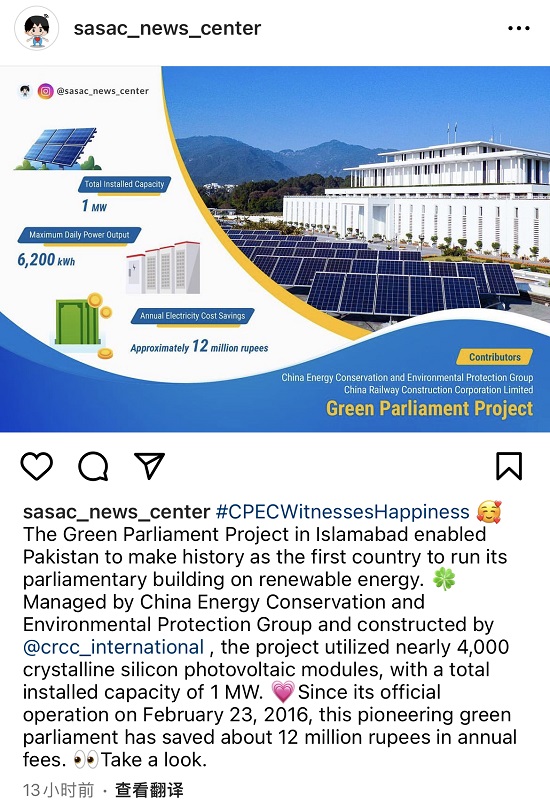 國資小新:Instagram報道中國節能援巴基斯坦項目情況