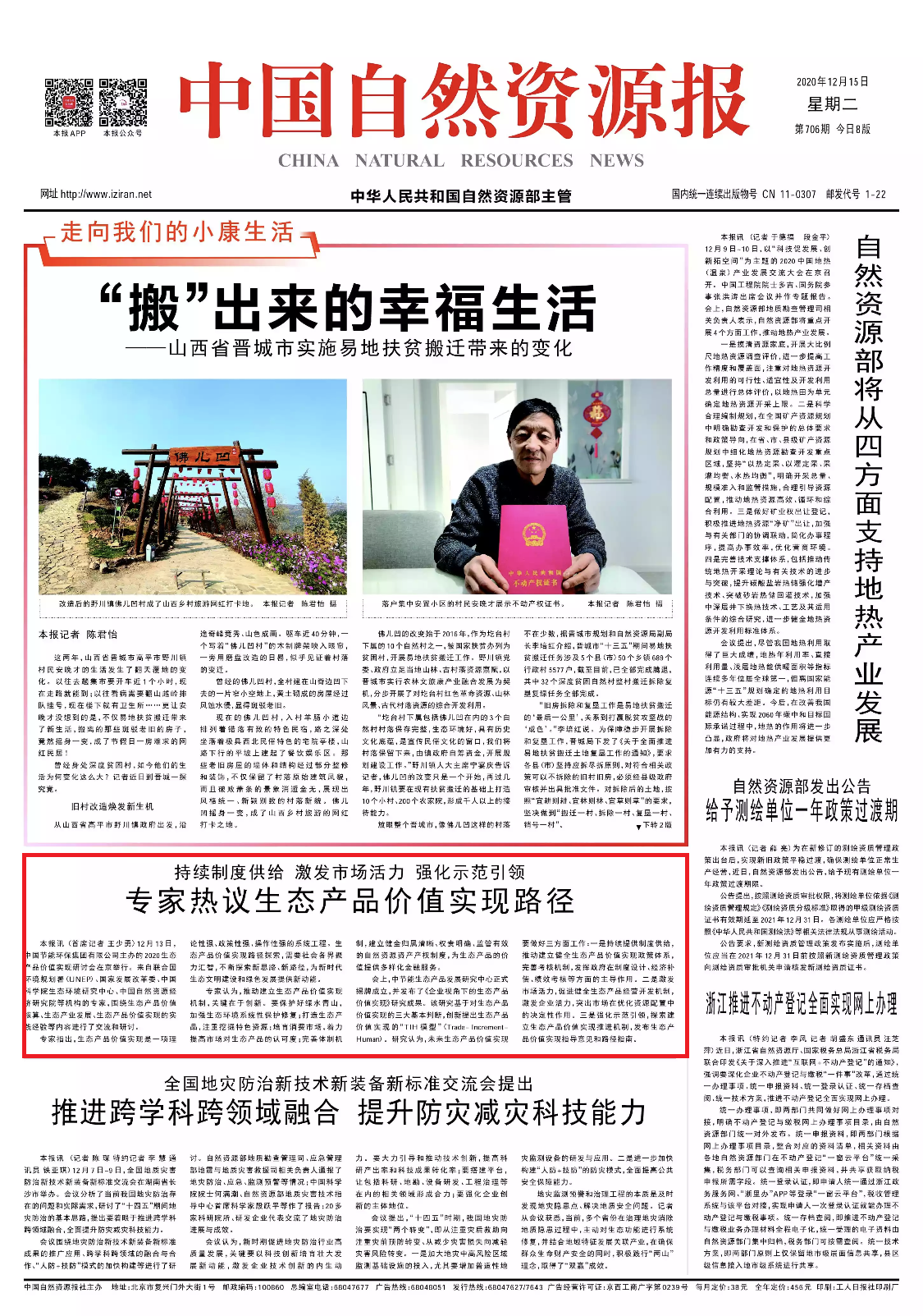 中國(guó)自然資源報(bào):專家熱議生態(tài)產(chǎn)品價(jià)值實(shí)現(xiàn)路徑