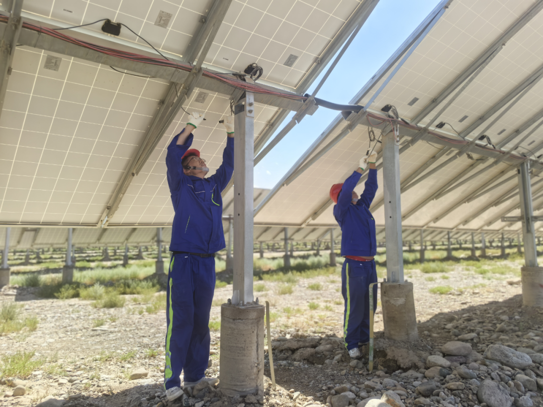 太陽能射陽電站運維人員正在進行組件排查工作 華中區域公司通過技術創新,全力做好迎峰度夏電力保供。所屬監利電站、萬年電站應用無人機巡檢技術,開展輸電外線隱患排查、故障支路修復及全線路防鳥刺安裝,使停電事故率降低50%以上,減少發電損失70萬千瓦時;貴溪電站完成39臺逆變器遮陽棚升級改造,預計全年增發電量31萬千瓦時、增收30萬元。 精管控降成本 細節挖潛見實效 新疆區域公司對設備采購、施工建設全鏈條進行精細化管控,實行24小時輪班作業,在嚴守安全質量底線前提下搶抓工期??灯巾椖俊犴橅椖俊⑷秧椖坑?月30日前順利并網,其中三友項目從開工至并網僅用39天,預計新增營業收入670萬元;第十二師產業園區低碳轉型50萬千瓦光伏項目正在有序建設中,為公司效益增長再添動能。