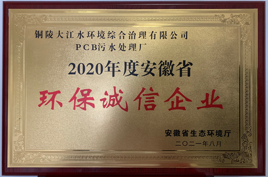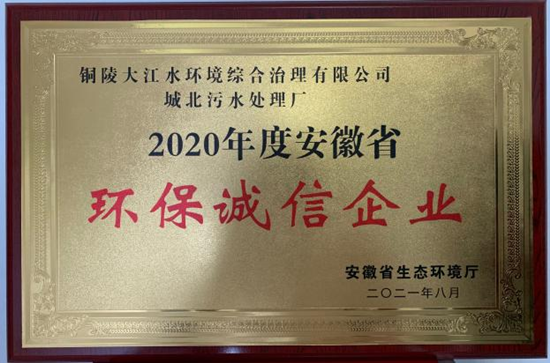 銅陵大江水環(huán)境綜合治理有限公司榮獲“安徽省環(huán)保誠信企業(yè)”稱號 |
