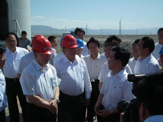 2011年7月,中央政治局常委李長春到中國節(jié)能玉門昌馬風(fēng)電場調(diào)研工作,對中國節(jié)能助力酒泉千萬千瓦風(fēng)電基地建設(shè)給予高度肯定。