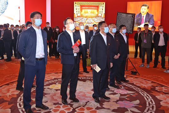 大家共同參觀了室外展區、序廳、中央綜合展區、地方展區、展望展區的6000多項展覽要素,在一件件實物模型、一段段生動視頻、一幅幅圖片圖表中感受黨和國家發展進程中這極不尋常、極不平凡的10年。集團公司位于江蘇省東臺市的“風光漁”互補產業基地、甘肅省酒泉市風光電基地項目和參與制作的大氣環境質量改善展示平臺亮相展覽,令觀展人員倍感振奮和自豪,大家紛紛感嘆,集團公司近年來取得發展和成績,根本在于以習近平同志為核心的黨中央的堅強領導,在于習近平新時代中國特色社會主義思想的科學指引。
