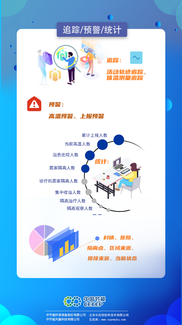 新型冠狀病毒肺炎牽動著所有人的心,在這場“戰(zhàn)疫”之中,疫情防控是根本,追根溯源是關(guān)鍵。 日前,中國節(jié)能下屬專業(yè)裝備平臺公司中節(jié)能環(huán)保裝備股份有限公司推出“疫情在線實(shí)時(shí)防控監(jiān)管系統(tǒng)2019-NCMC”,可幫助各地快速精準(zhǔn)掌握轄區(qū)內(nèi)重點(diǎn)人員基本情況和動態(tài)消息,為一線做出正確防疫決策提供數(shù)據(jù)支撐。中環(huán)裝備將無償提供該系統(tǒng)的專業(yè)技術(shù)支持和服務(wù),為共同“戰(zhàn)疫”貢獻(xiàn)央企力量! 系統(tǒng)應(yīng)用人工智能、大數(shù)據(jù)、云計(jì)算等多種技術(shù),基于每日疫情防控基層單位的數(shù)據(jù)填報(bào),可實(shí)現(xiàn)轄區(qū)內(nèi)重點(diǎn)監(jiān)控人員的信息收集、動態(tài)活動情況監(jiān)管和數(shù)據(jù)實(shí)時(shí)統(tǒng)計(jì)分析三大功能。