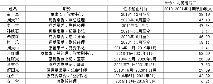中國(guó)節(jié)能環(huán)保集團(tuán)有限公司企業(yè)負(fù)責(zé)人2019-2021年任期激勵(lì)收入情況